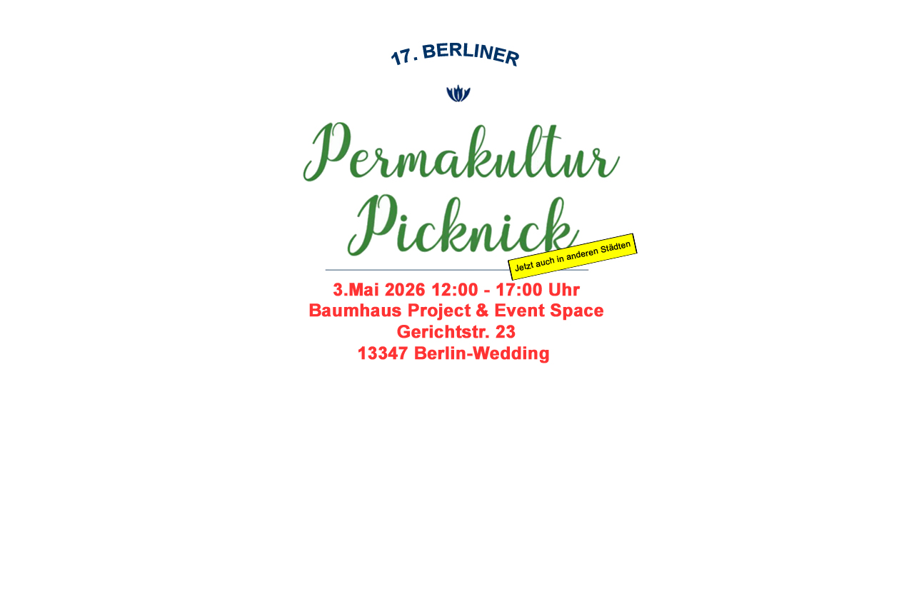 Eine freie und offene Veranstaltung in Berlin, um interessierte Menschen über Permakultur zu informieren, Permakulturbegeisterten einen Raum zum Austausch zu geben und die Vernetzung zwischen der Permakultur und anderen enkeltauglichen, nachhaltigen Konzepten und Projekten zu fördern.